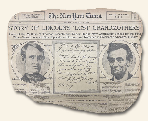 We often discuss the legacy of our founding fathers and American heroes… highlights of their lives which leave an indelible impression on us as individuals or on the country we cherish. With all this focus, it is a shame we often miss the stories of their ancestry… the people and events that molded them into the larger-than-life figures we admire. Such is the case with Abraham Lincoln. Although we have all learned of his self-education in a one room log cabin and the deep loses he suffered as a young man, it wasn’t until 1925 that we were able to get a clearer picture of family members who came before and how their stories might have impacted the Lincoln. On February 8, 1925 The New York Times had substantial coverage of Abraham Lincoln’s grandmothers who had, until this point, not been confirmed. The paper goes on to say the stories of these ladies reveal. “Episodes of Heroism and Romance in the president’s Ancestral History”. Not unlike today, apparently, people at the turn of the century longed for a good paparazzi story as well.
